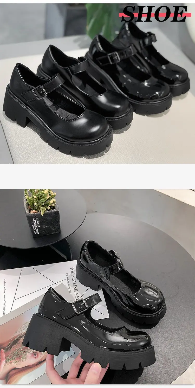 Туфли в Стиле Лолита; Женские туфли мэри джейн на платформе с пряжк...
