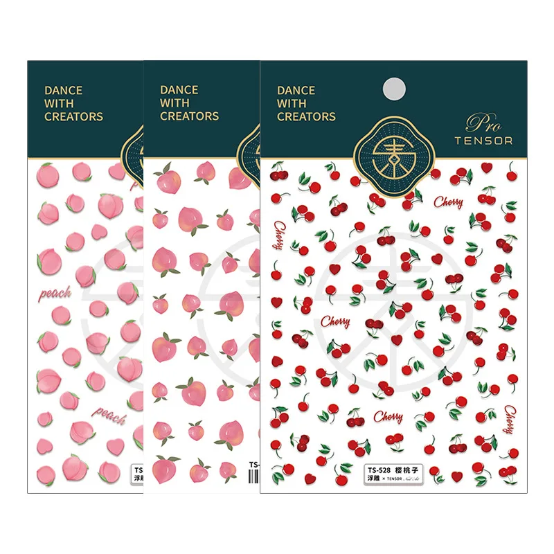 Милые вишневые персиковые фруктовые наклейки для ногтей 3D гравиров...