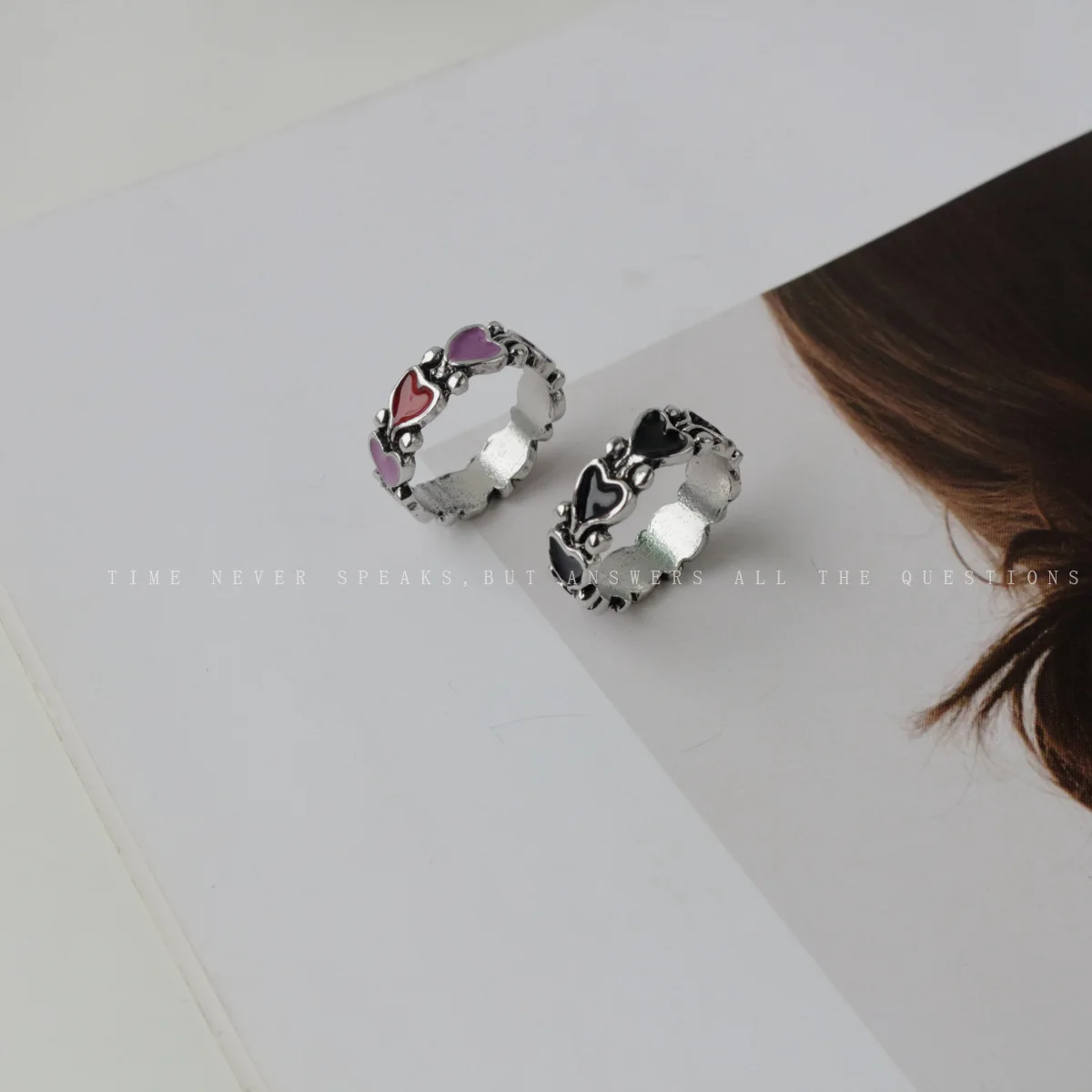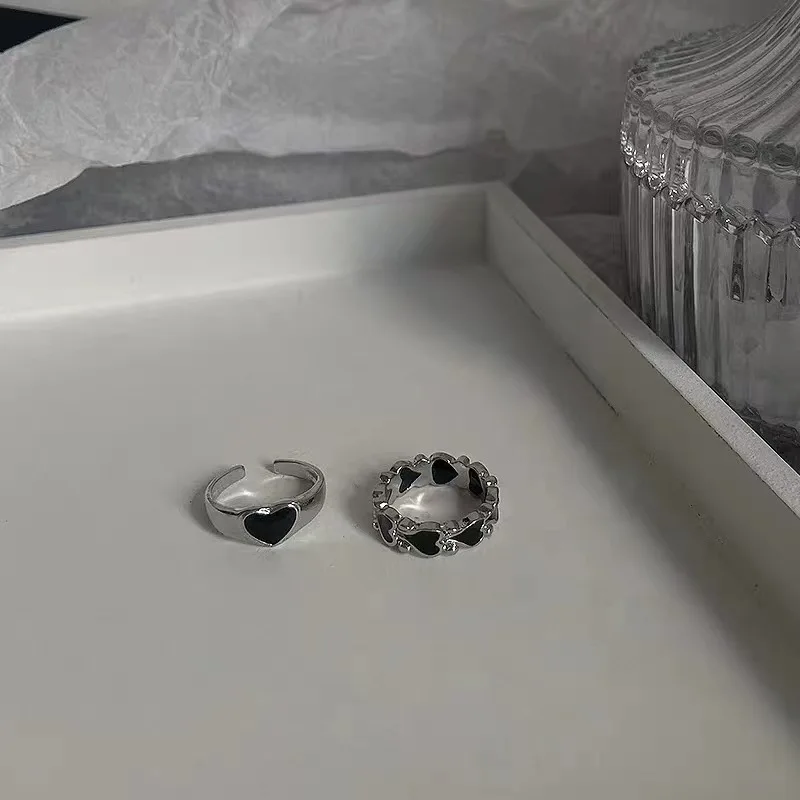 Кольцо в стиле ретро для мужчин и женщин, открытое в виде сердца черного и красного цвета, Модная бижутерия для влюбленных на день рождения и свидания
