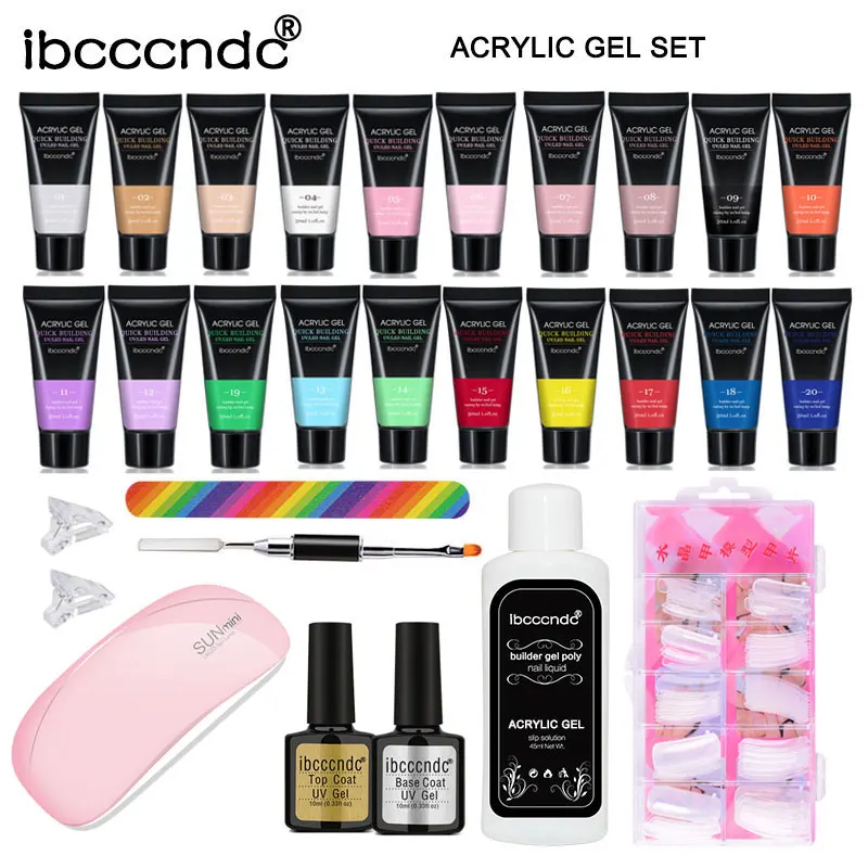 Профессиональный набор для наращивания ногтей 30 мл полигели 20 цветов Quick набор гелей для ногтей с базовым и верхним покрытием Сушилка для ногтей лампа для выскальзывания