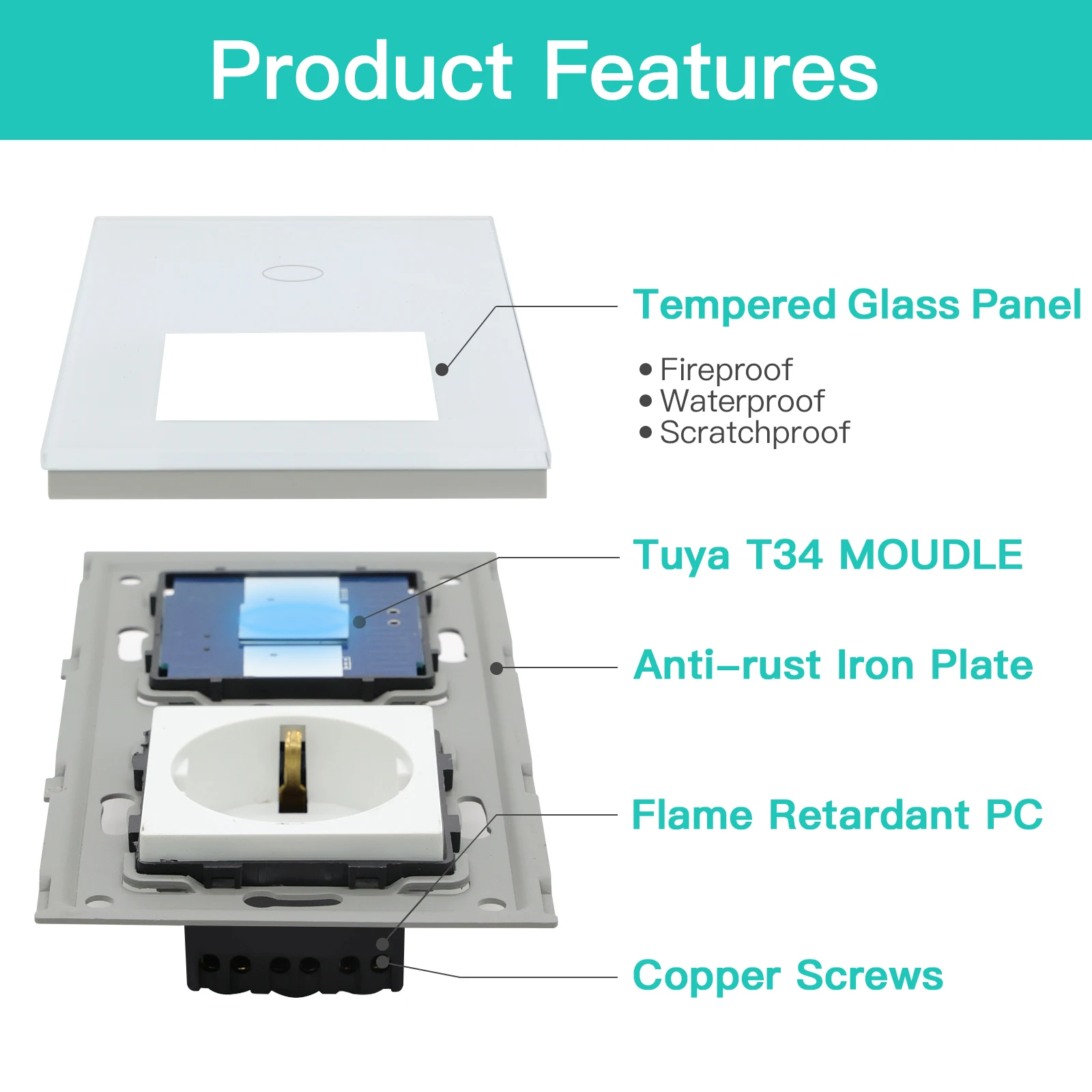 2. Наш Wifi домашний разъем и переключатель являются огнеупорными и водонепроницаемыми. Защита от электрического удара для вашей семьи.