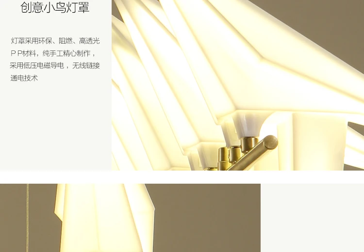 Современный светодиодный подвесной светильник, креативный Золотой светильник в виде птицы, лампа в скандинавском стиле для гостиной, спальни, бумажное украшение для столовой, дома