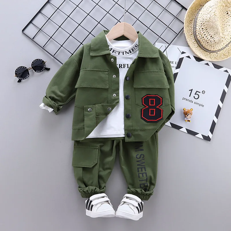 Детская хлопковая куртка, штаны, 3 шт.компл., для мальчиков и девочек