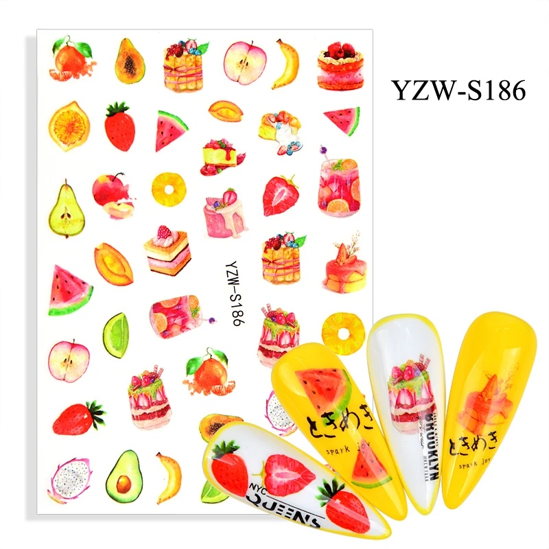 1 лист фруктовых букв наклейки для ногтей наклейки лимон, клубника арбуз Водная передача слайдер дизайн ногтей Decoraton обертывания