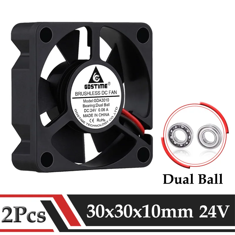 Бесщеточный вентилятор Gdstime, 24 В, 30 мм, 3010, с двумя шарикоподшипниками, для 3D-принтера, 30 мм x 10 мм, микровентилятор для ноутбука