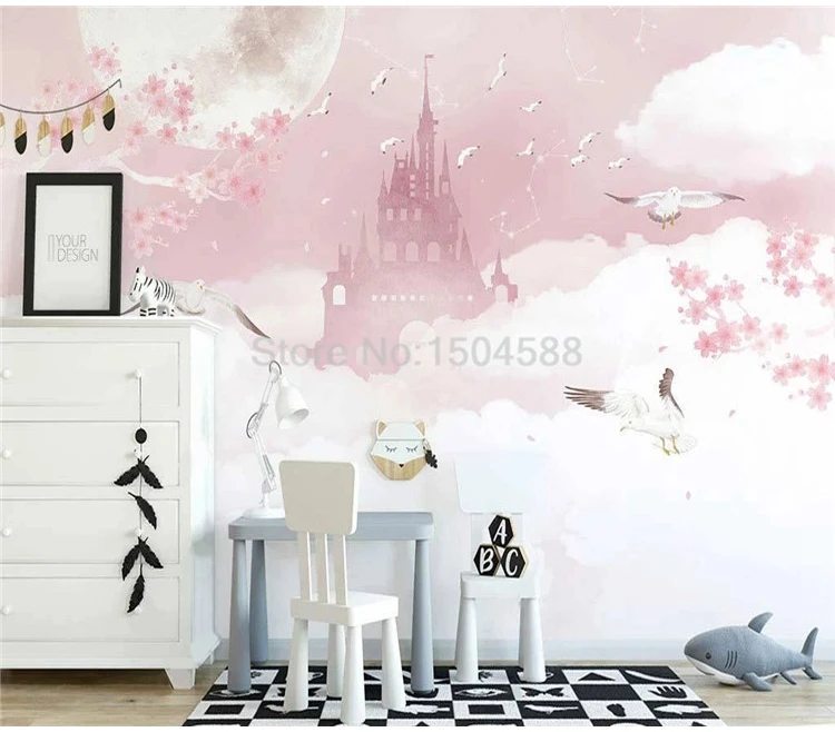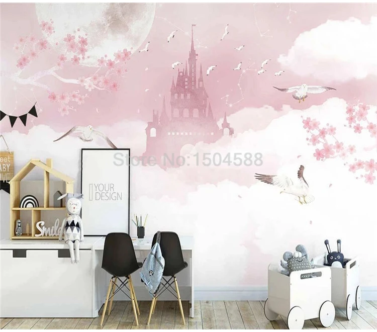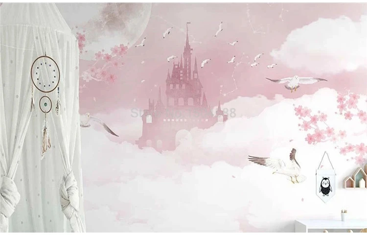 Настенные обои на заказ любого размера скандинавские Ins ручная роспись розовые облака милые цветы замка фон для детской комнаты настенная живопись