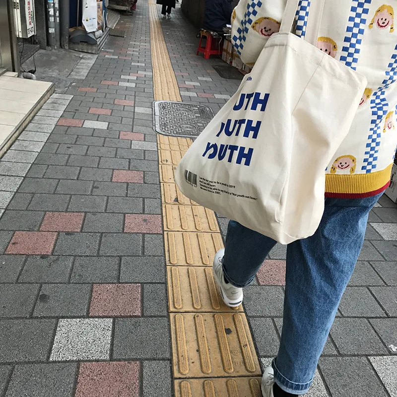 Холщовая Сумка для покупок для женщин, Женская хлопковая тканевая сумка на плечо с молодежным принтом и надписью, многоразовая эко-сумка-тоут для продуктов