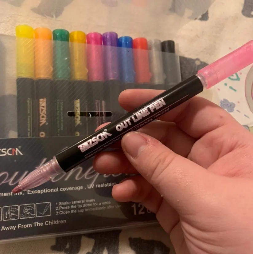 Эти маркеры очень классные! Они были упакованы очень хорошо. Я полностью протестировал их, используя их, чтобы заполнить эскиз, каракули и написать. Я был очень доволен тем, как они выполнены! Они очень высокого качества и имеют очень яркие цвета! Их цвет ярко Светится при ярком свете, и мерцает, когда свет его ловит. Они, безусловно, идеально подходят для написания или обрисовки! Они очень просты в использовании. Я настоятельно рекомендую купить эти товары, так как они могут повысить уровень искусства!