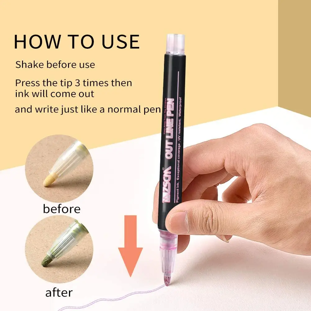 12 цветов супер сквиглли контур металлический маркер двойная линия краска Подарочная карточка Рисование DIY школьные принадлежности блестящие художественные ручки