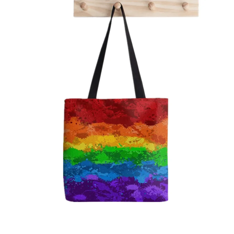 2021 Shopper Pride, сумка-тоут с принтом радужного флага, женская, Harajuku, сумка для покупок, наплечная сумка для покупок, Женская Холщовая Сумка