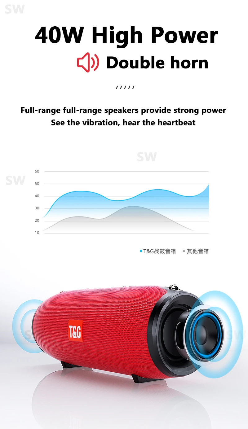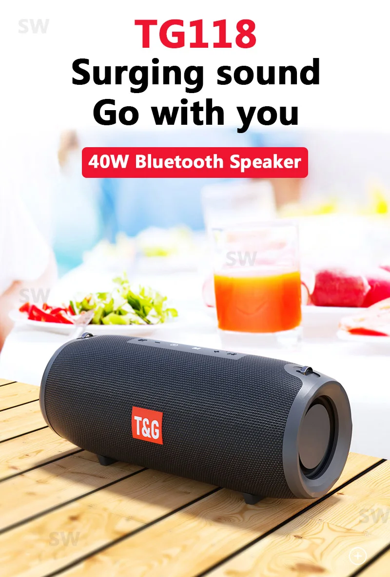 Bluetooth-динамик TG118 высокой мощности, 40 Вт, водонепроницаемая, Портативная колонка для компьютера, динамик s, сабвуфер, музыкальный центр, FM