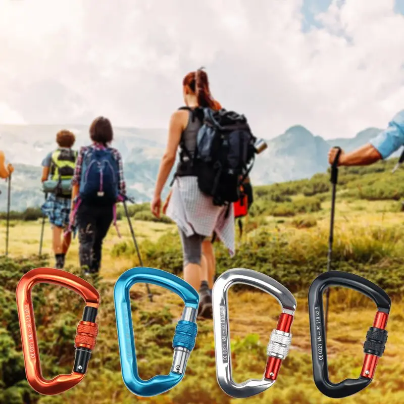 Сильный и безопасный: сверхмощный карабин использует 7075 авиационный алюминиевый материал с высокой прочностью, основной осью прочности 30KN (прибл. 6614 фунтов силы), Короткая ось 10 кН (прибл. 2205 фунтов силы) разблокировка 9 кН (прибл. 1984LB сила)