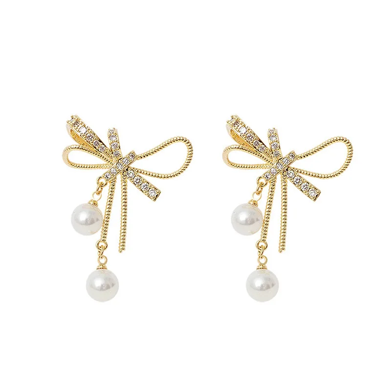 2021 Новое поступление модные висячие серьги с бантом для женщин простые серьги в Корейском стиле с жемчугом женские элегантные ювелирные изделия вечерние Ринок