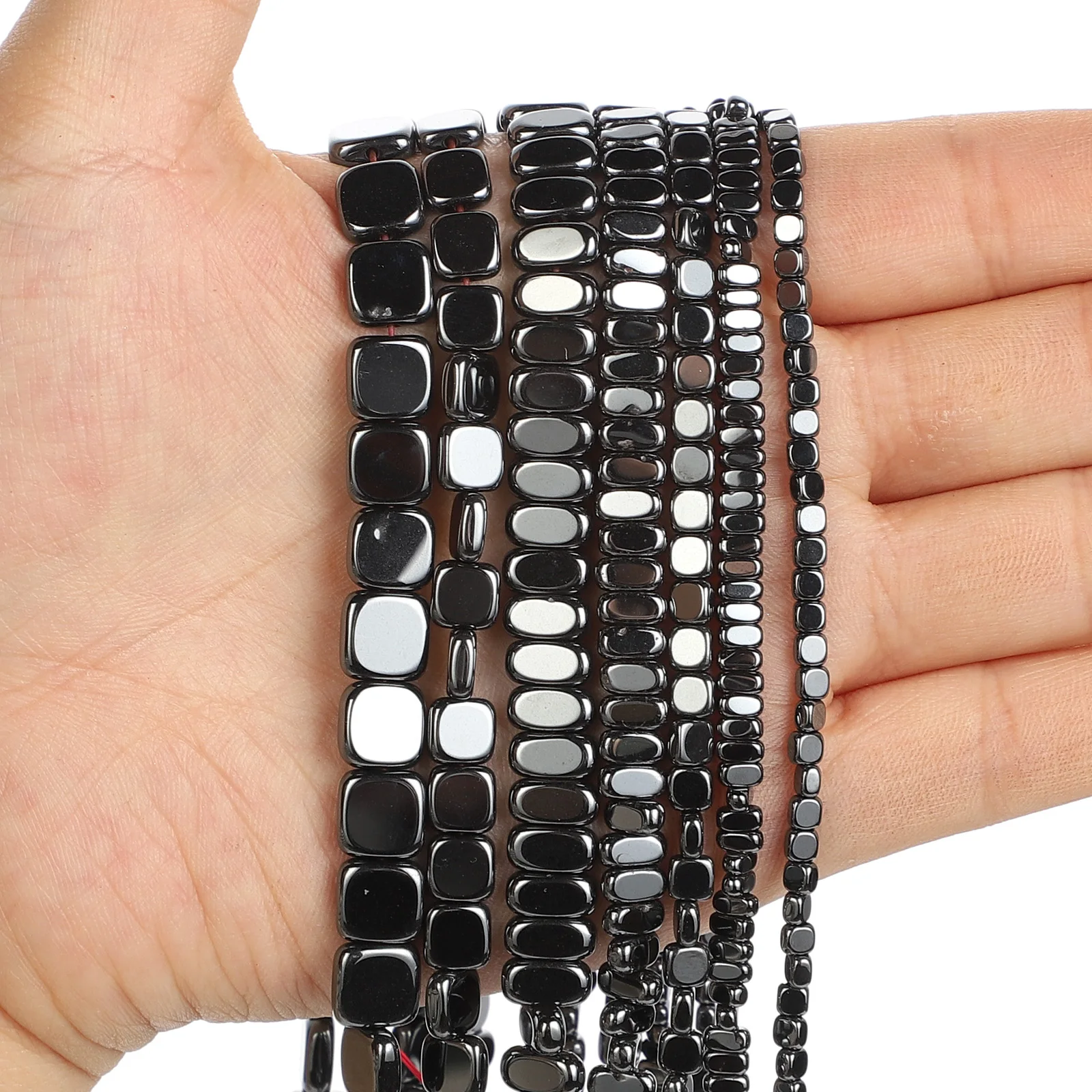 Цилиндрические черные гематитовые бусины, Квадратные бусины из нату...