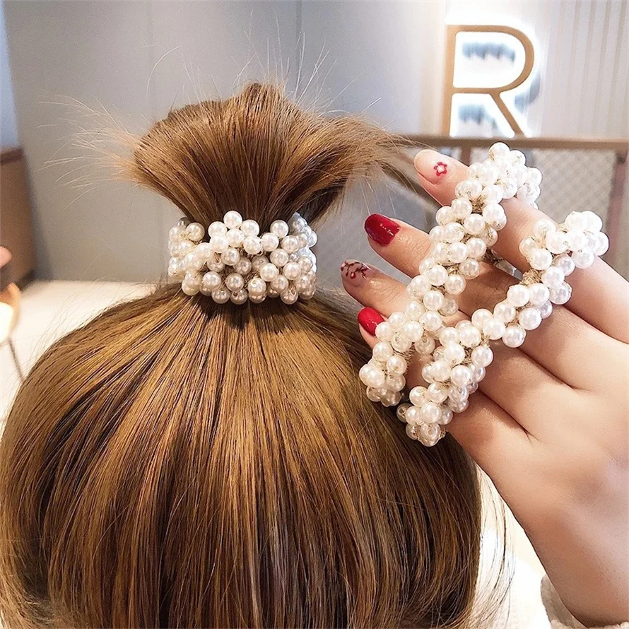Резинка для волос женская, женская резиновая, с жемчугом, эластичная