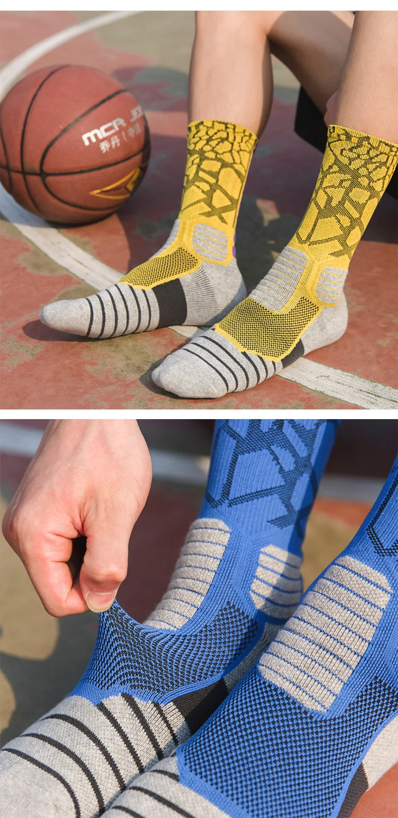 Новинка мужские баскетбольные носки комбинированные цветные блочные дизайнерские Элитные велосипедные носки эластичные амортизирующие спортивные носки для мужчин для бега