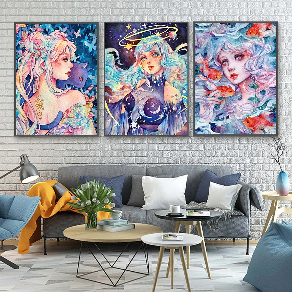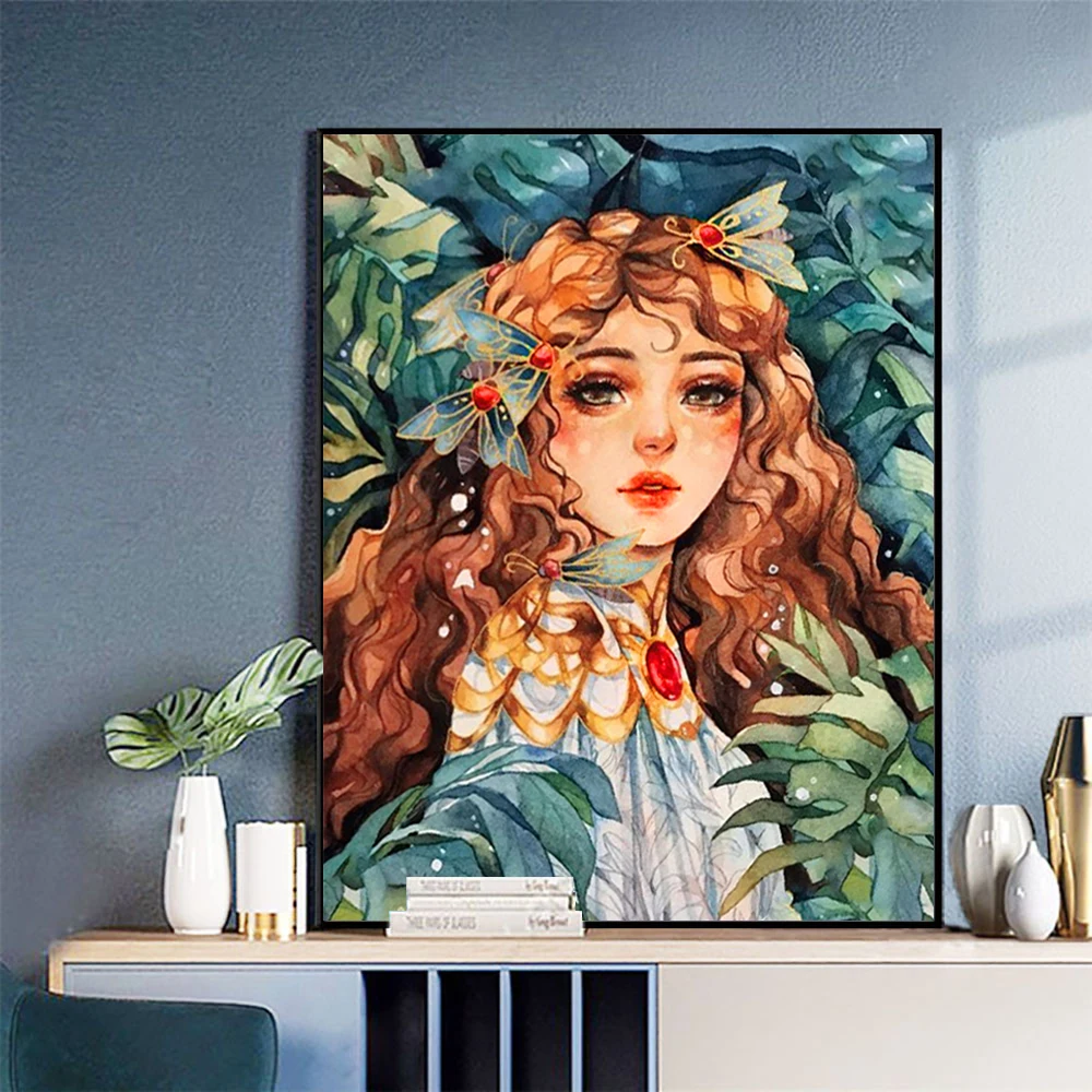 XUEQIXIAOZU 5D "сделай сам" с нарисованной девочкой, портрет роспись бриллиантами камни в форме ромбаНабор для рисования с круглыми камнями и полотном с ручной вышивкой в виде мозаики украшения дома