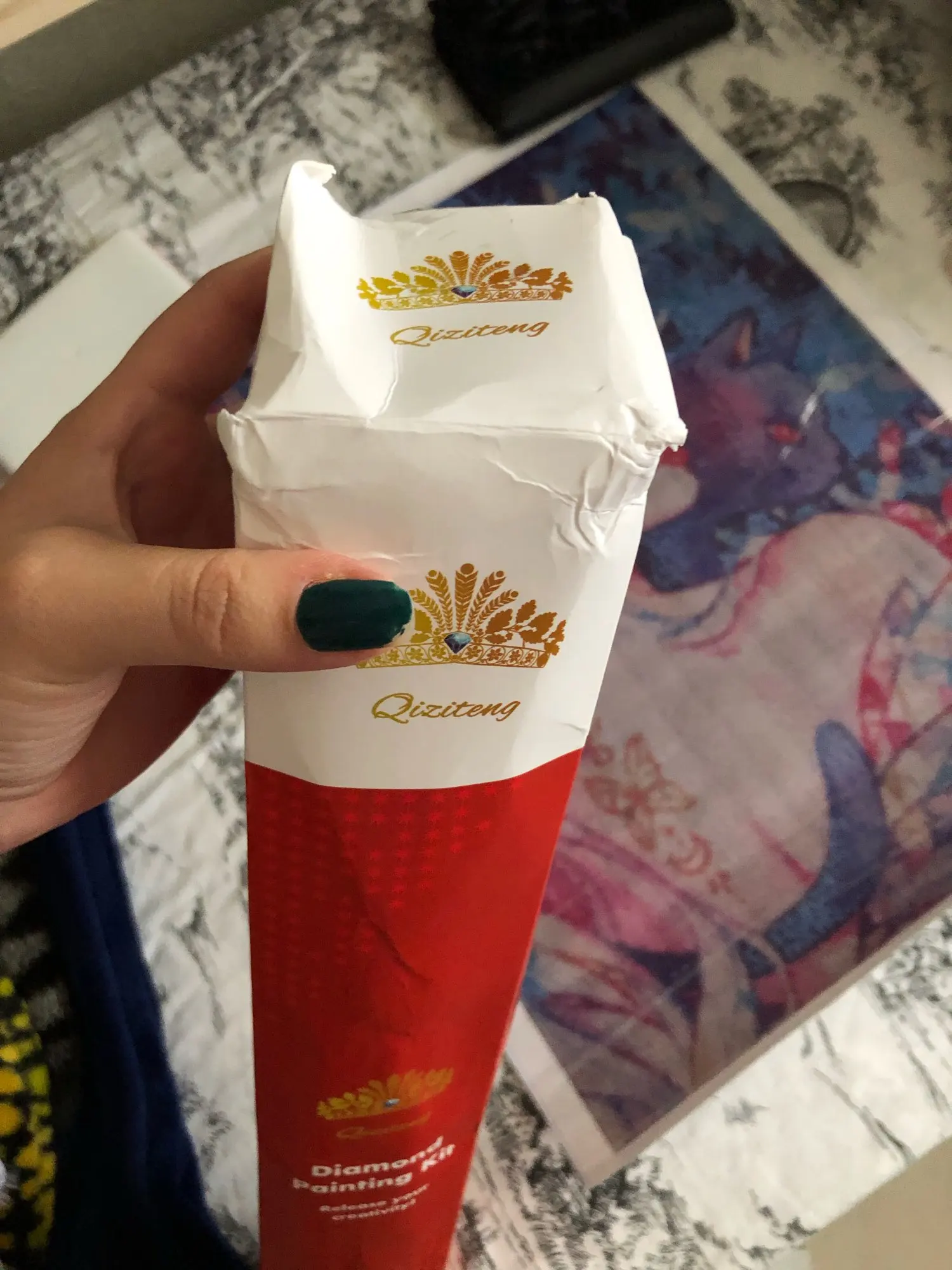 Es la segunda vez que compro para esta tienda y todo correcto. Ha tardado un semana en llegarme, el envío más rápido hasta ahora. La impresión muy bien, todo se entiende; hasta ahora no he visto mal corte o suciedad en los diamantes, que venían de algunos uno más y eso está genial. La calidad del lienzo es mejor (venía una pulserita). La caja ha venido un poco dañada por el viaje, pero lo importante es que lo de dentro no ha sufrido ningún desperfecto. Estoy muy contenta y lo vuelvo a recomendar, en cuanto lo haya terminado, subo el resultado <3