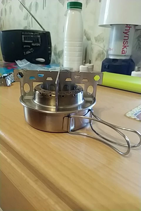 Отличный товар подходит для каждой спиртовой печи. Из-за формы вы можете кипятить даже в маленькой металлической чашке. Рекомендуется для легкого кемпинга
