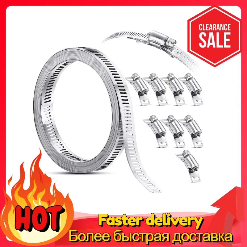 304 червячный зажим для шланга из нержавеющей стали зажимной ремень с крепежом Регулируемый зажим для шланга для самостоятельной сборки канальный зажим 11,5 футов
