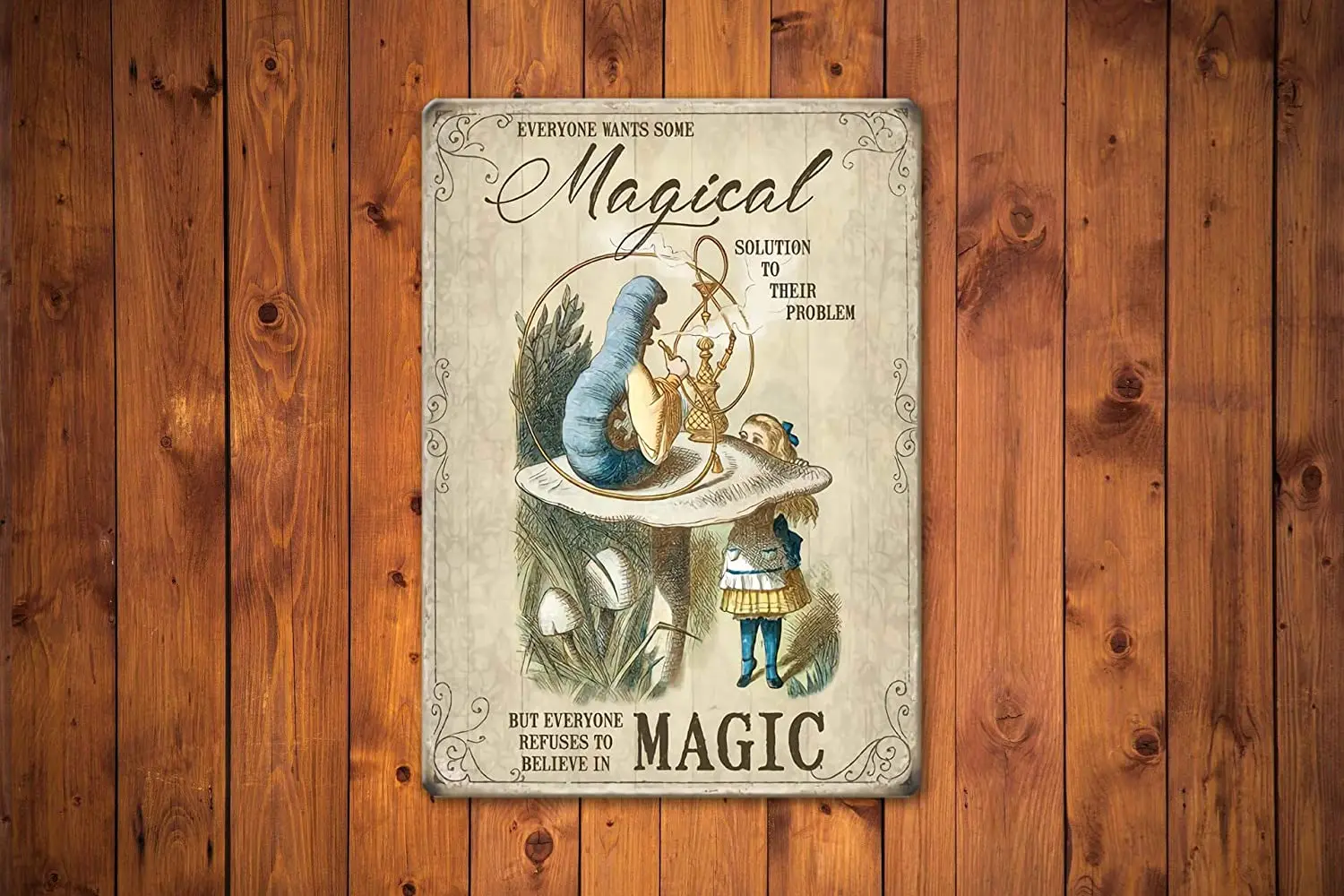 Плакат Agedsign Алиса в стране чудес, винтажный металлический жестяной знак, волшебное решение, цитаты, Декор, подарки для девушек, вечерние в гостиную