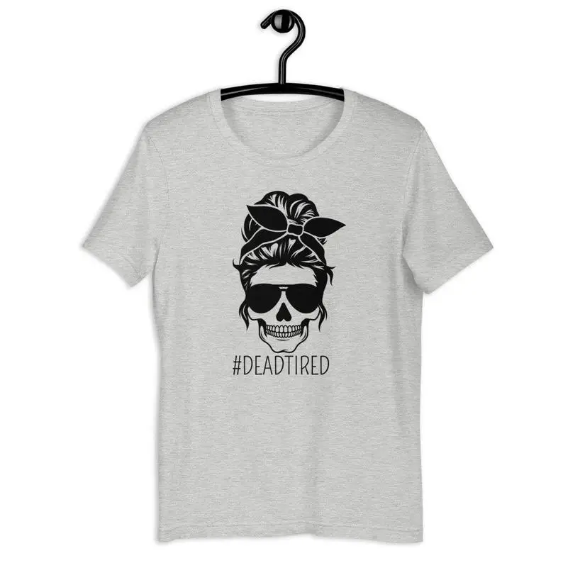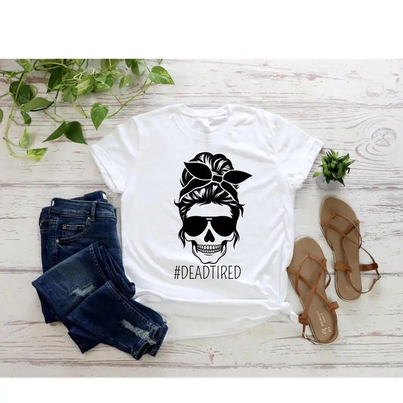 Череп Мама Жизнь футболка Tired Мама Жизнь женщины 100% хлопок Harajuku Забавный Графический Женская одежда с круглым вырезом футболки уличная y2k
