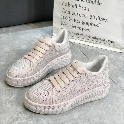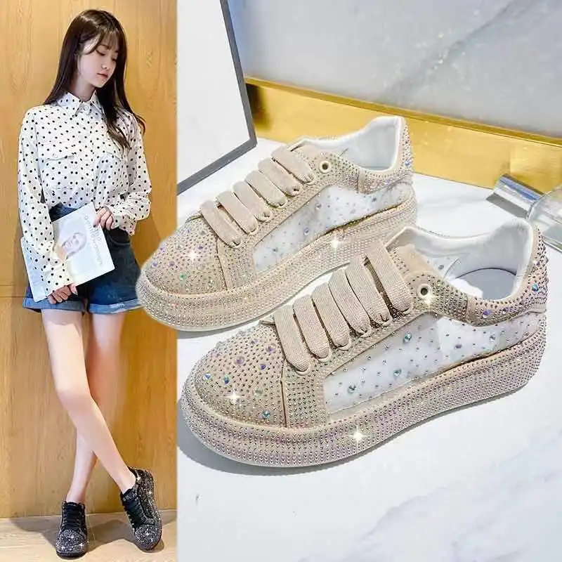 Женские кроссовки со стразами, на платформе, спортивная обувь, белые, блестящие, стразы, Осень-зима