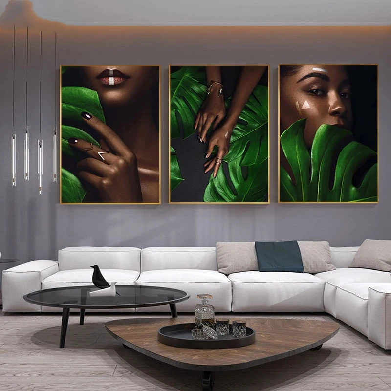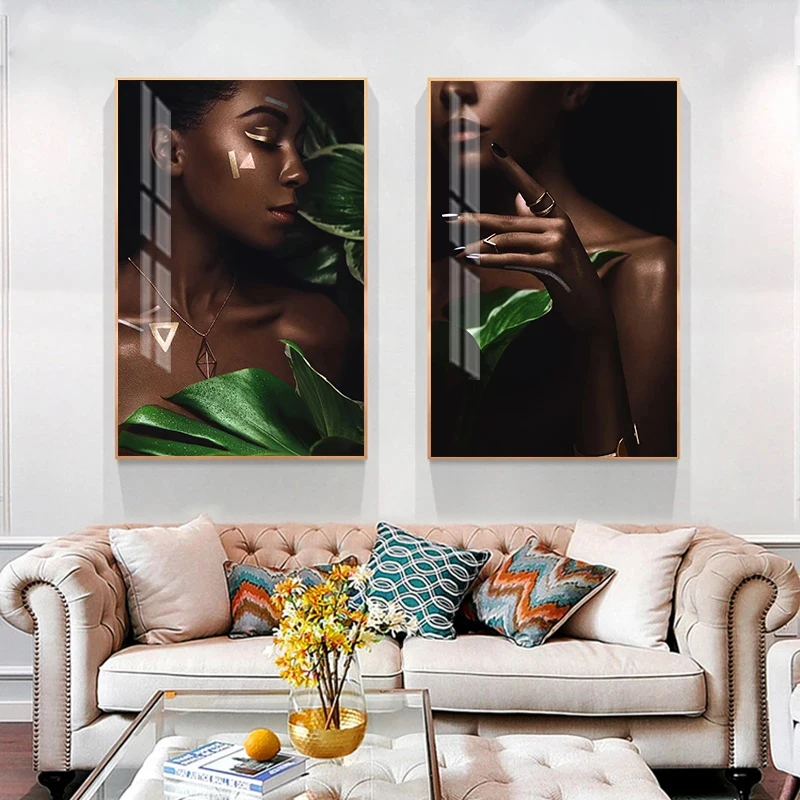 Холст художественный плакат черная женщина растения Холст Картина современный скандинавский декор для домашней комнаты картины для интерьера без рамки настенное искусство