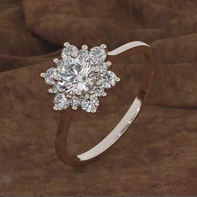 Роскошное женское кольцо-Снежинка, модное кольцо из желтого розовог...