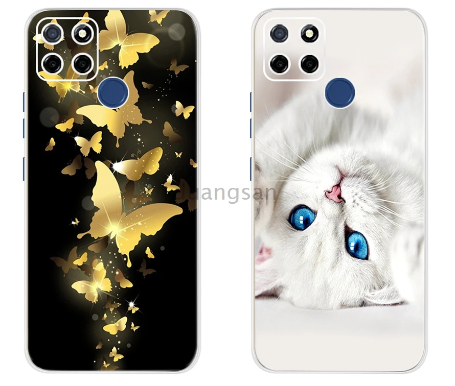 Чехол для Realme Narzo 50i 6,5 ''с милым котом и бабочкой, мягкий с...