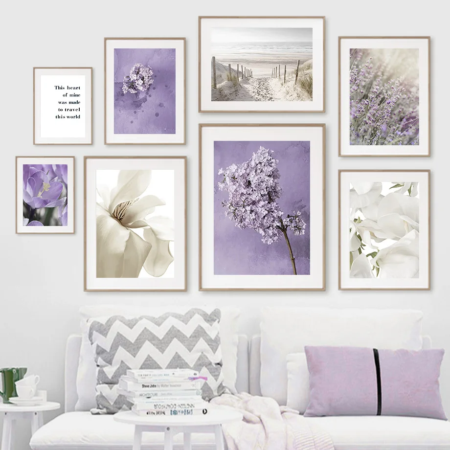 Абстрактная Картина на холсте постеры и печать песок морской пляж фиолетовая Магнолия в скандинавском стиле картина на стену винтажное искусство для домашнего декора