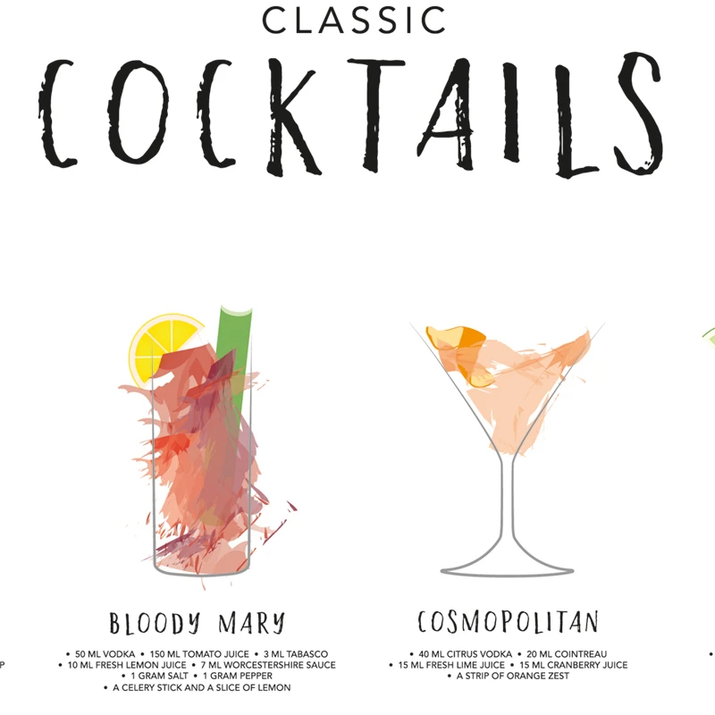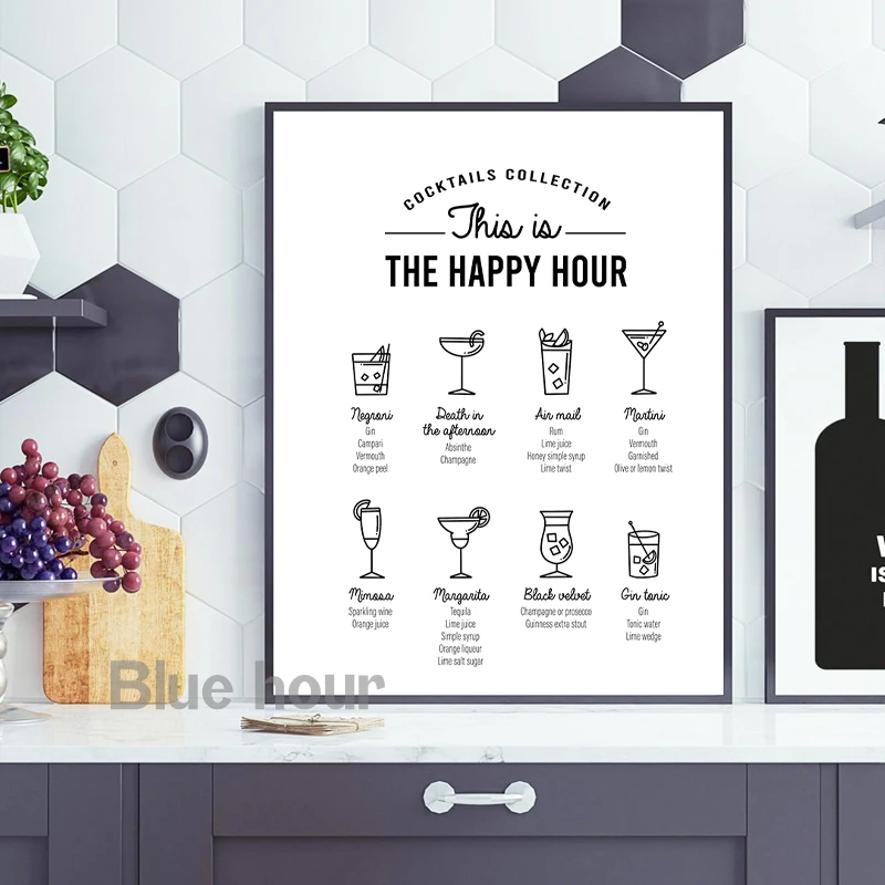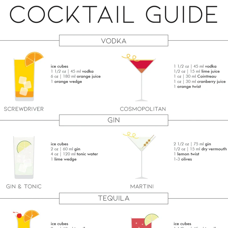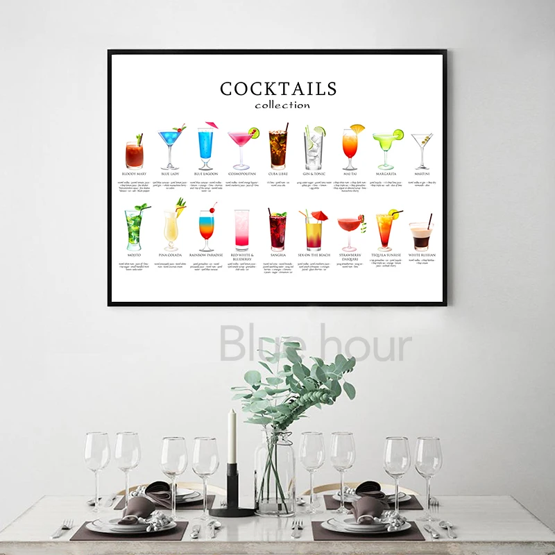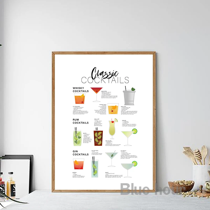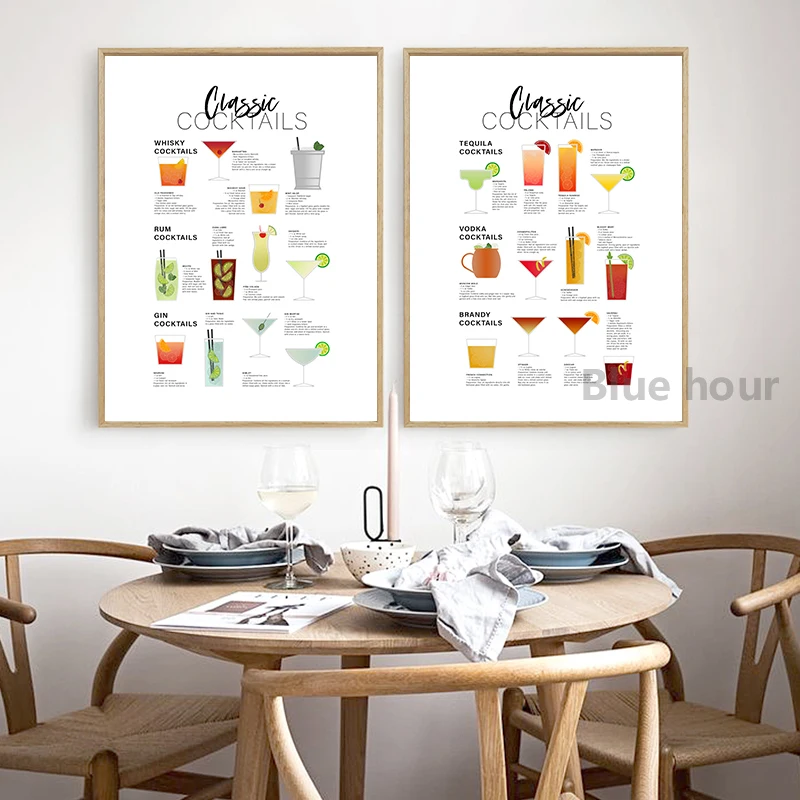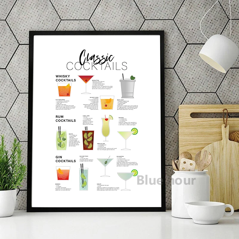 Классический плакат-гид для коктейлей, Картина на холсте, настенное искусство на кухне, декор для коктейлей, подарок для влюбленных, принты для бара, паба, настенные картины