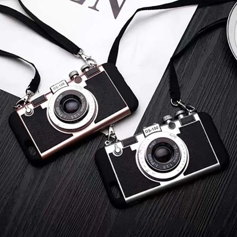 Ретро камера полное покрытие ожерелье чехол для Apple iPhone 12 11 Pro Max XR 7 8 5 6 защитный чехол-накладка из ПК и силиконовая защитная накладка на заднюю панель из ТПУ с плечевым ремнем