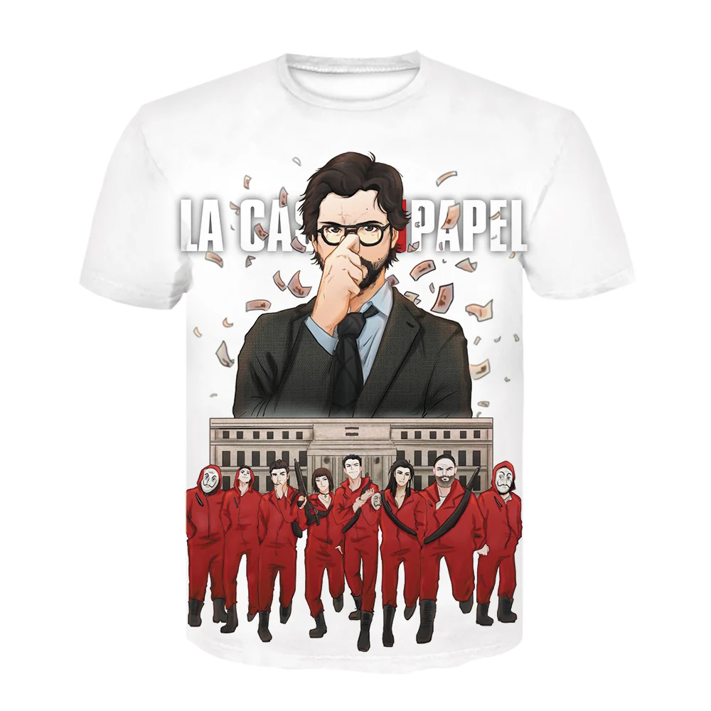 Футболка мужская с 3D принтом бумажный дом, смешной Топ оверсайз с рисунком персонажа из ТВ-сериала бумажный дом, летняя уличная одежда