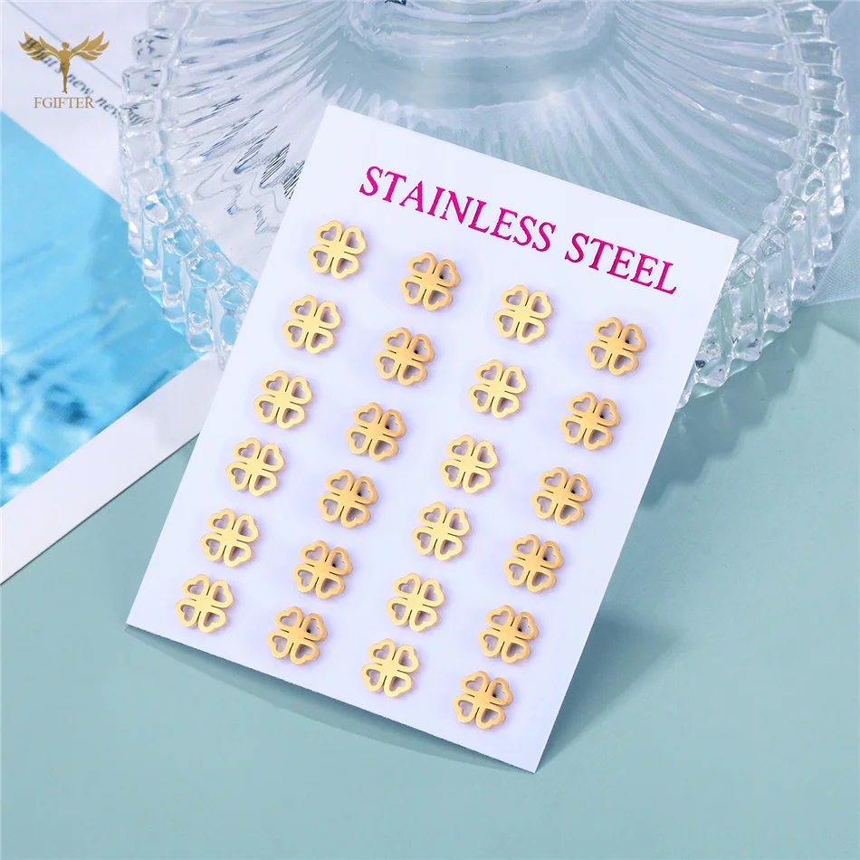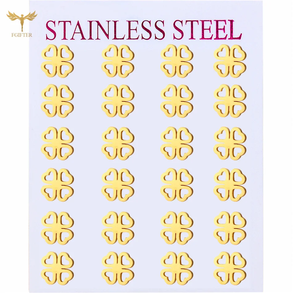 12 пар, женские серьги-гвоздики из нержавеющей стали