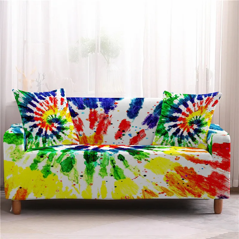 Радужный чехол для дивана, эластичные Чехлы для дивана в гостиной, психоделический эластичный полноразмерный чехол для дивана, защитный чехол