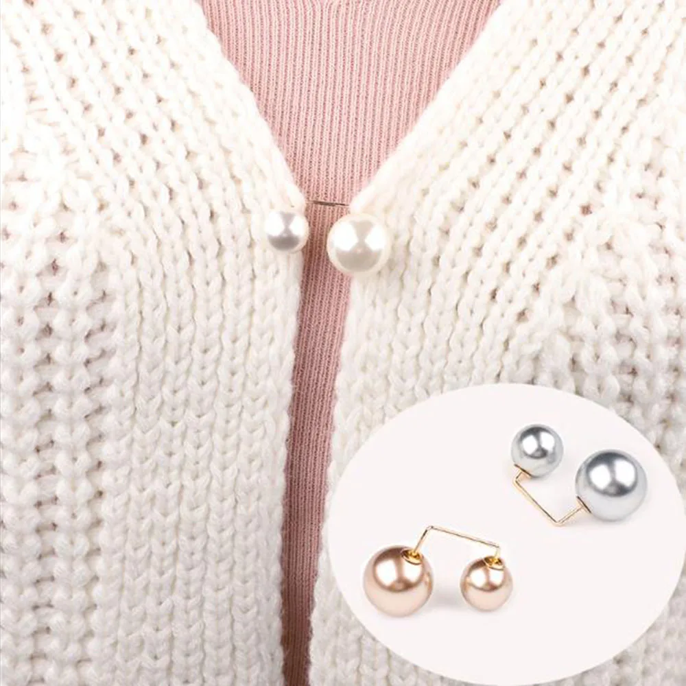 Женская Брошь с двумя жемчужинами, металлическая брошь на лацкан, для свитера, рубашки, кардигана