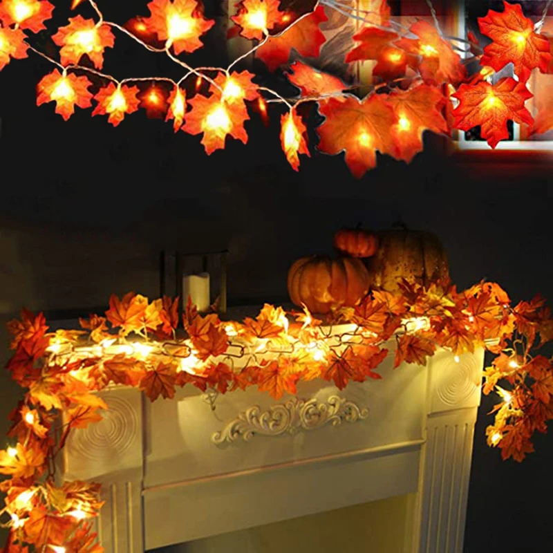 Светодиодный осень кленовые листья гирлянды светодиодные гирлянды декор для Дня благодарения осень гирлянда огни Хэллоуин дома вечерние камин с декором
