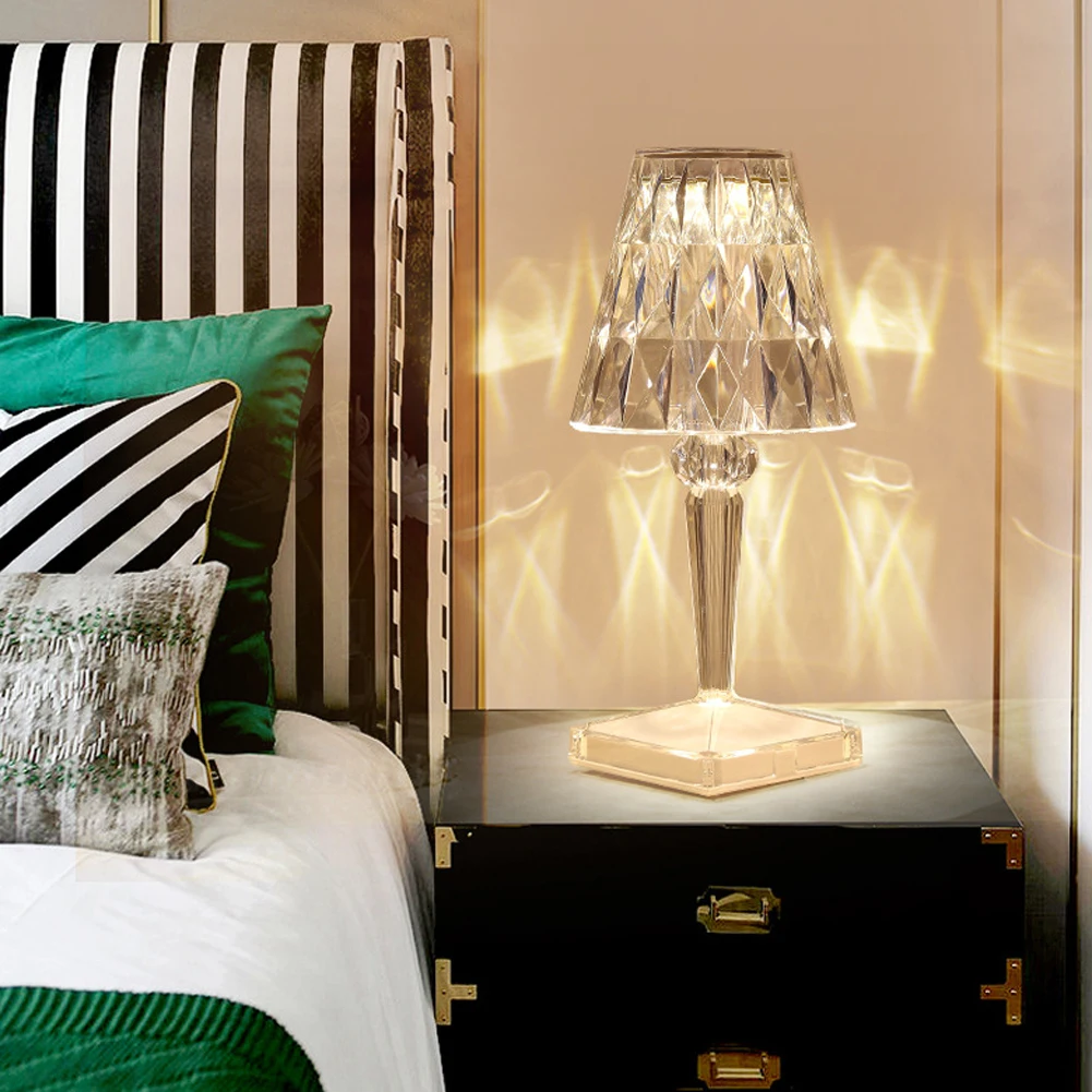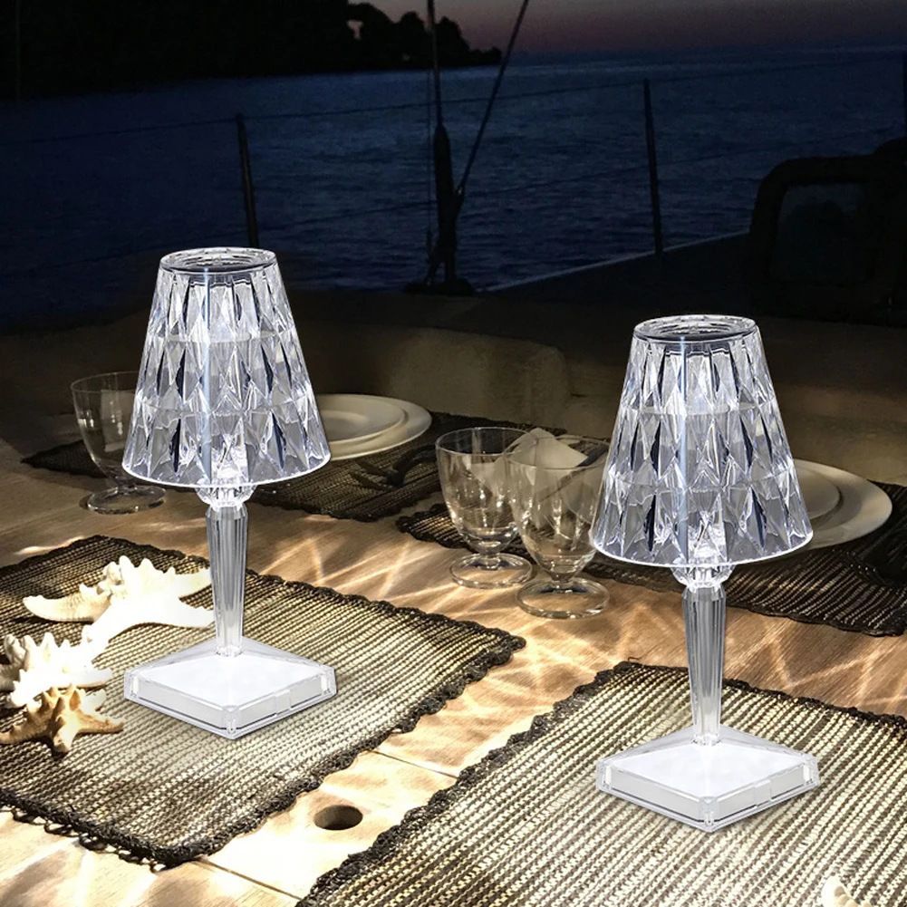 Алмазная настольная лампа, перезаряжаемые через USB Акриловые Настольные лампы, прикроватный светильник для спальни, бара, хрустальный светильник, двухцветный светодиодный ночник