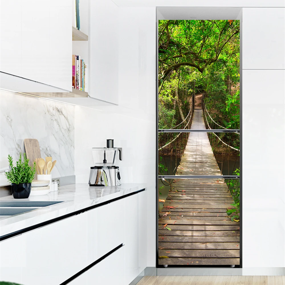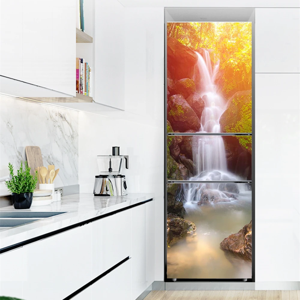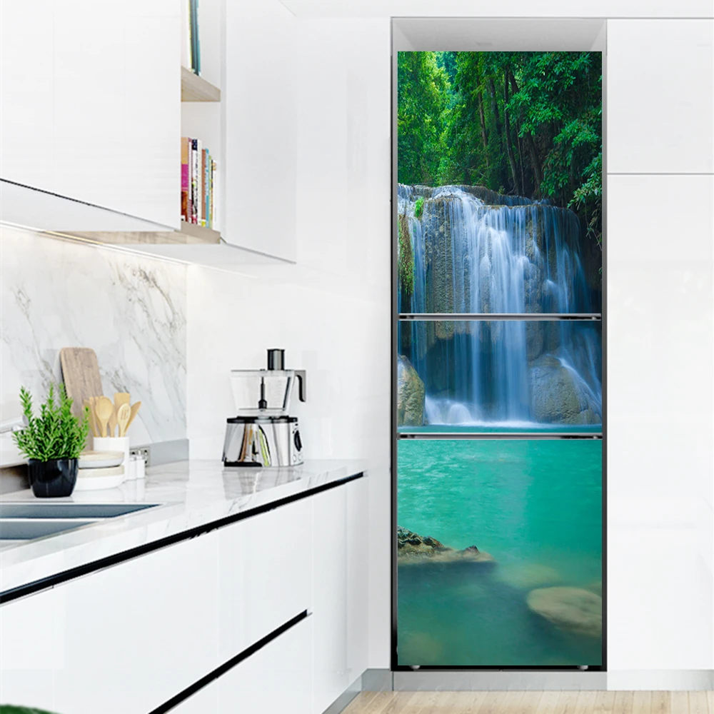 Наклейка на холодильник s, крышка холодильника, дверь, ландшафт, растение, море, виниловая самоклеящаяся кухонная мебель, декоративная оболочка, наклейка сделай сам
