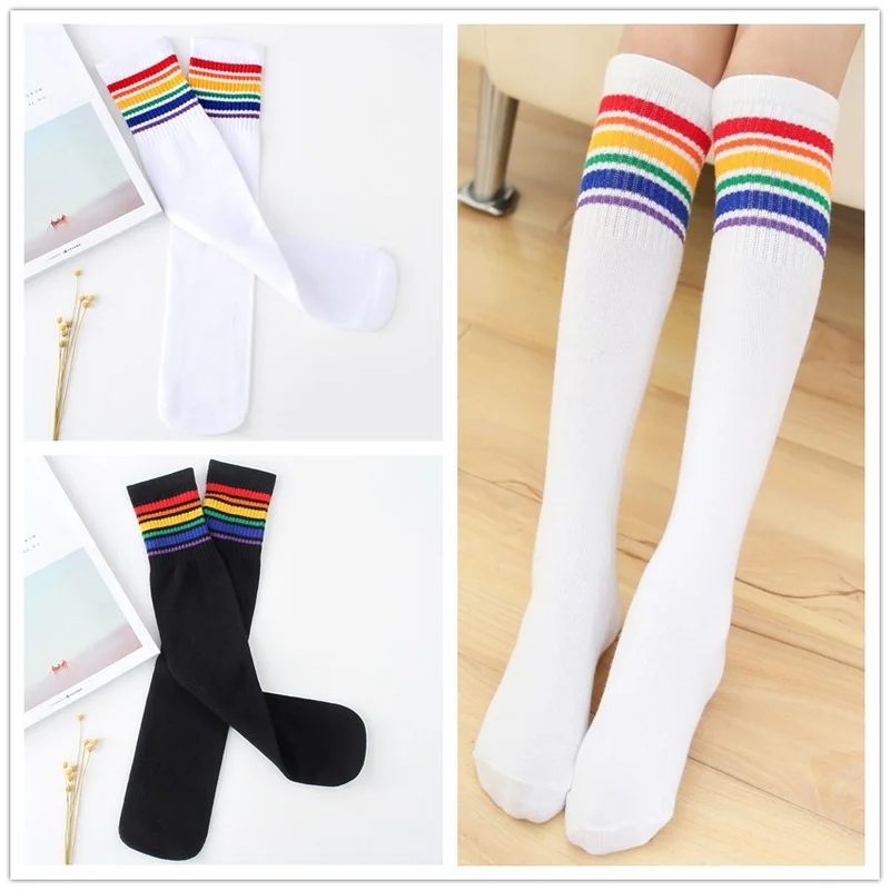 Чулки женские с радужным принтом, хлопковые цветные спортивные голь...