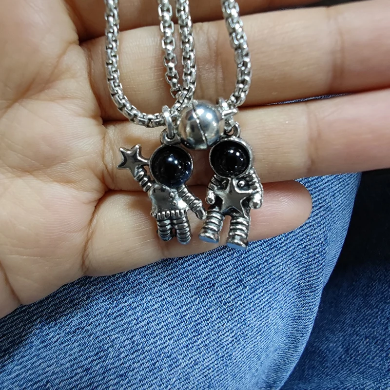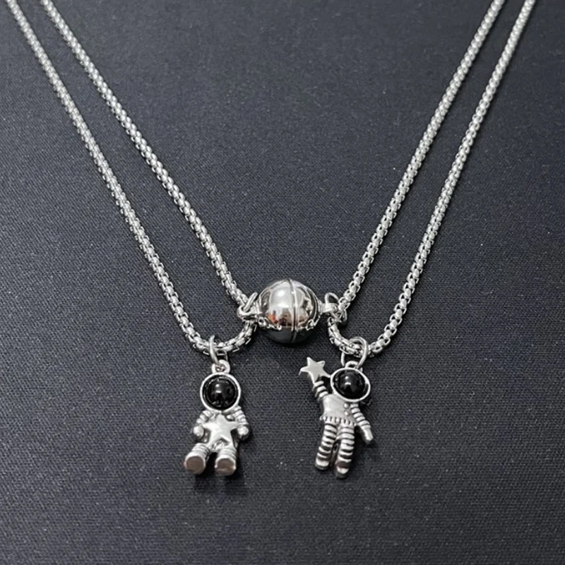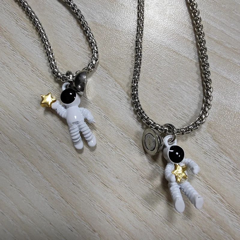 Магнитное ожерелье для влюбленных пар 2 шт., кулон в виде астронавта, сердца, с магнитным расстоянием, ожерелье для пар, подарочное ювелирное изделие на годовщину
