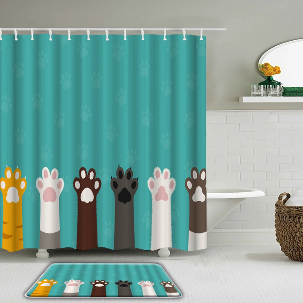 Мультяшный Симпатичный кот собака 3D печатный набор штор для душа с крючками животное водонепроницаемый ванная штора s нескользящий коврик для ванной домашний декор