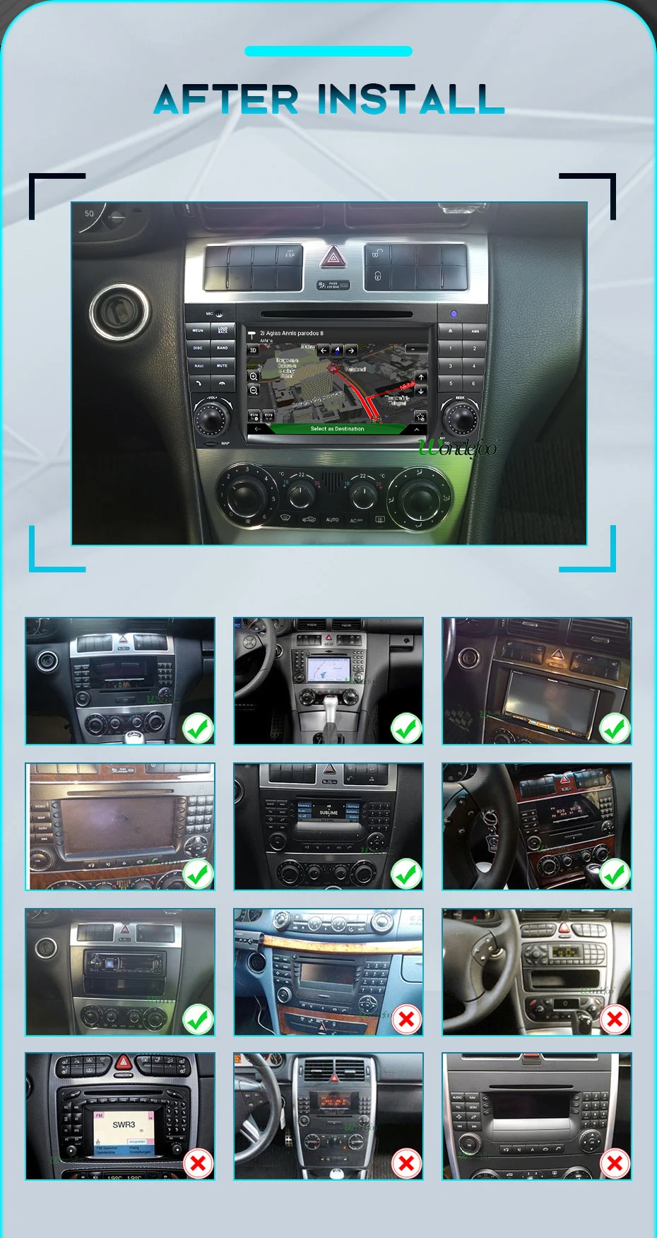 C270/C280/C300/C320/C350/32 AMG)Для Mercedes Benz G-Class W463 (G350/G500/G55) 2006-2008Для Mercedes Benz Sprinter/W906/W311/W315/W318 2006-2012Для Mercedes Benz CLK-Class W209 2005-2011Для Mercedes Benz B200/B150/B170/A180/A160Для Mercedes Benz Viano 2006-2012Для Mercedes Benz Vito/W639 2006-2012Для Mercedes Benz A-class/W169 2004-2012Для Mercedes Benz B-class/W245 2004-2012Для Volkswagen VW Crafter 2006-2012Для Volkswagen VW LT3 2006-2011 хотя мы приложили все усилия, чтобы убедиться, что данное устройство будет совместимо с указанными транспортными средствами, пожалуйста, проверьте год, размеры и форма центральной консоли вашего автомобиля перед покупкой.1. Подарок = инструменты + микрофон + копия файлов карты в GPS внутри (вы можете использовать gps напрямую, не включая карту карты).