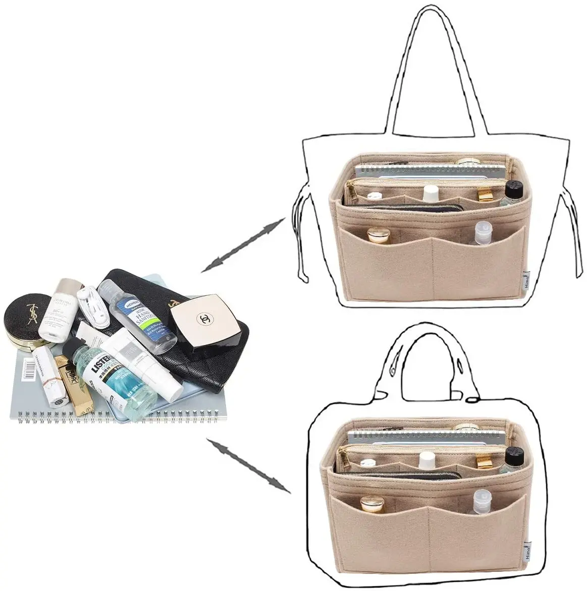 Органайзер для кошелька, войлочный Органайзер для сумок на молнии, сумка в сумке, сумочка и Сумка-тоут
