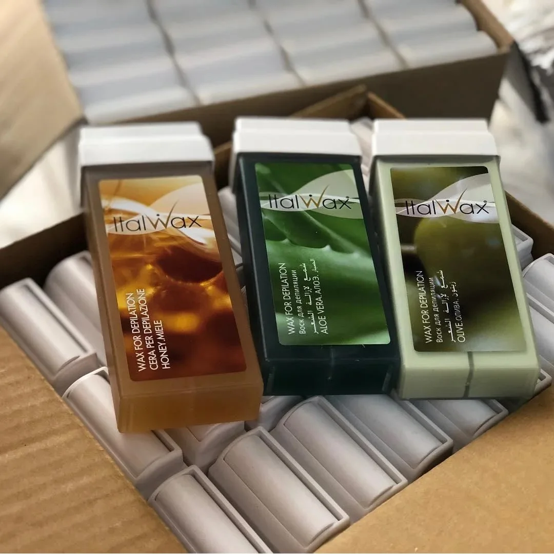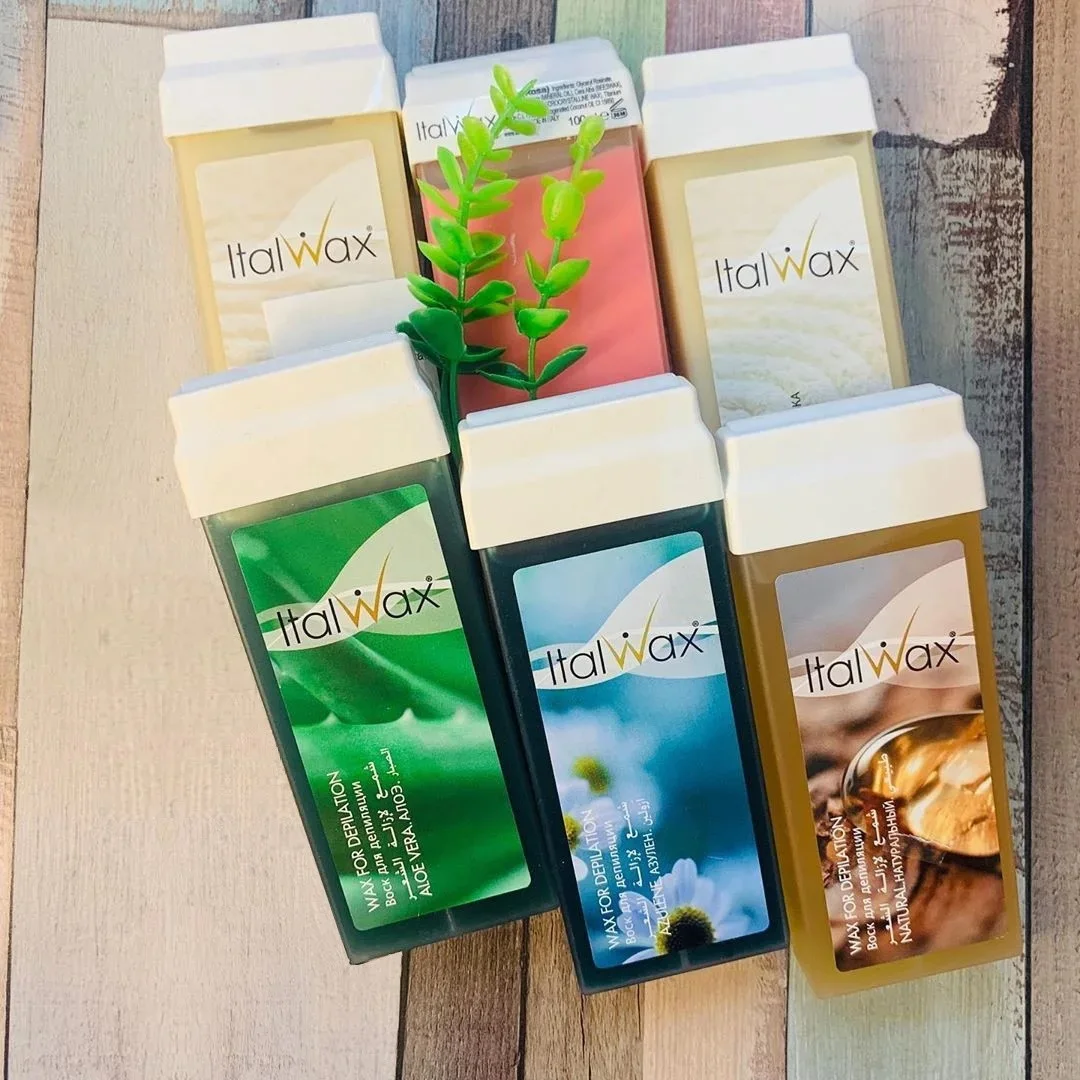 Наборы Воск ITALWAX в картриджах 4х100мл с ароматом Алоэ вера, оксид цинка, роза, азулен, олива, мед, банан, белый шоколад