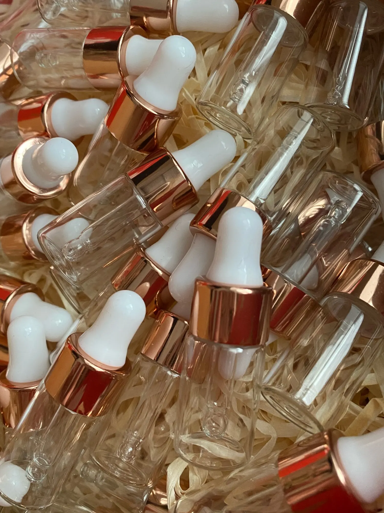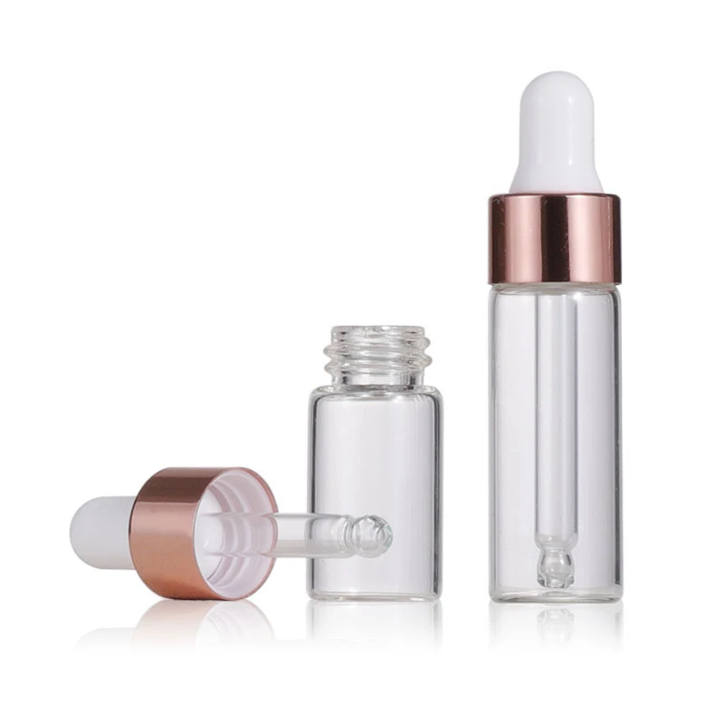 100 шт. 1235 ML прозрачный Стекло ароматерапии эфирное масло бутылочка Парфюмерия Косметика диспенсер капля флакон из розового золота Кепки химические реагенты для капля Eye Пипетка для жидкости бутылки