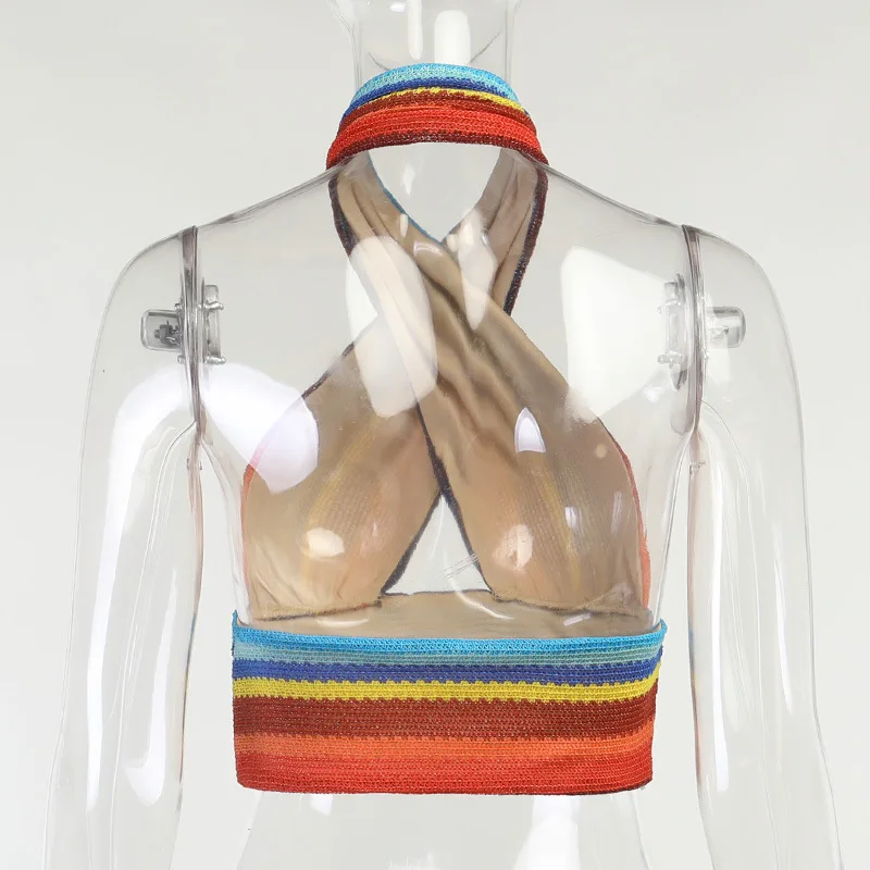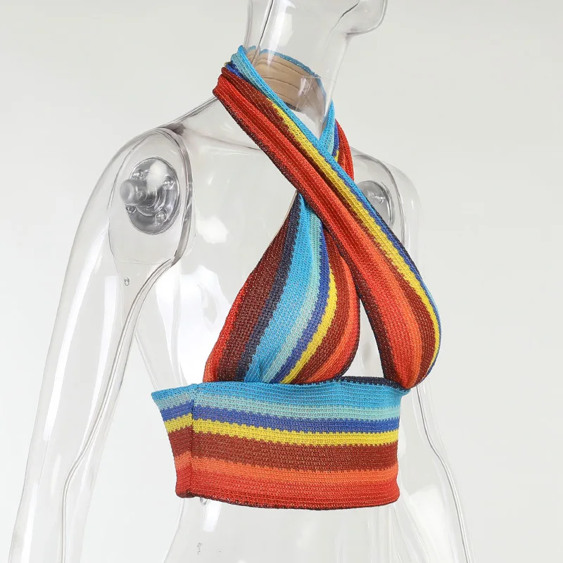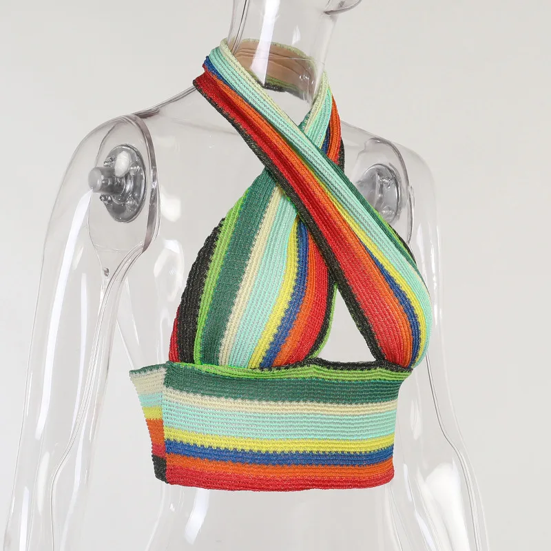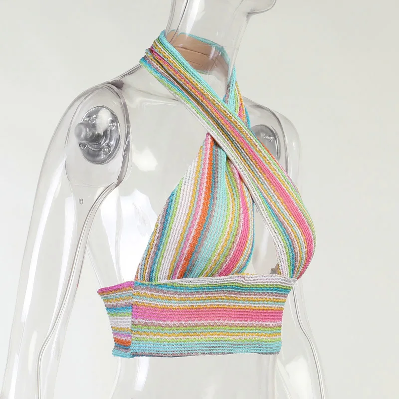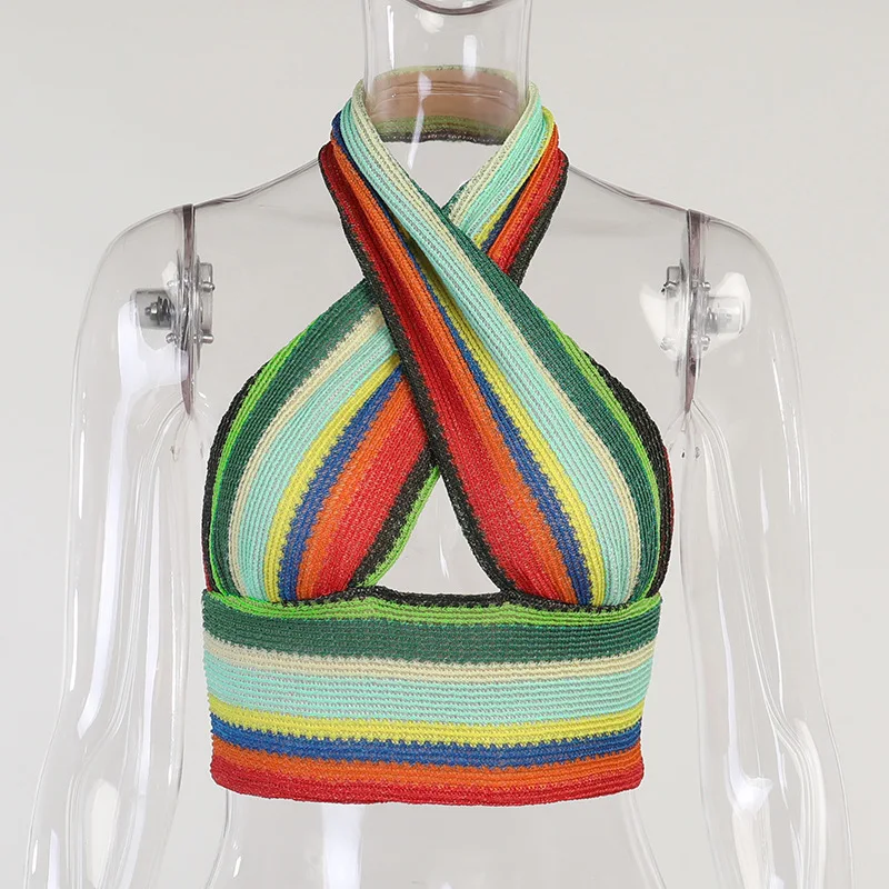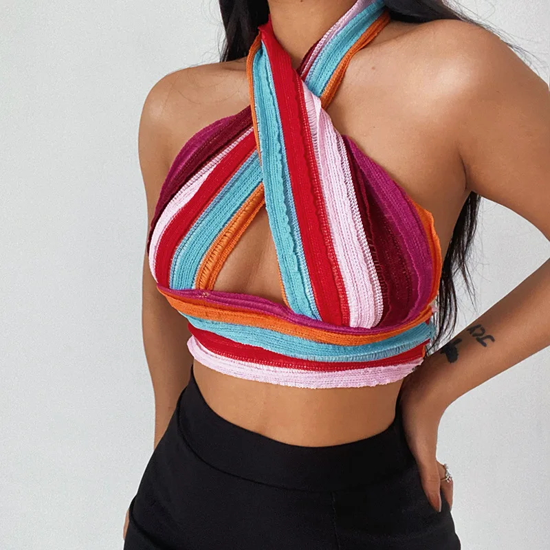 Женский трикотажный топ с лямкой на шее NewAsia, Летний Пляжный топ в полоску с открытой спиной и перекрестной бретелькой y2k