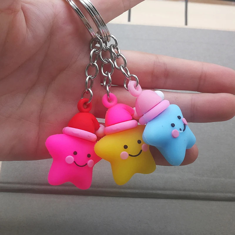 Держатель для ключей со звездами для девочек, милая цепочка для ключей, модная сумка, аксессуары для ювелирных изделий, силиконовые брелки из ПВХ, подарок для пар
