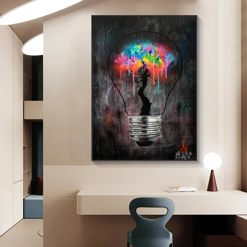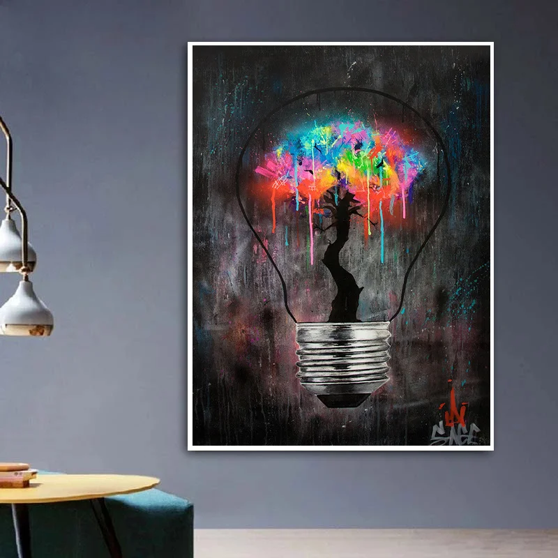 Граффити лампочка уличное искусство холст масляная живопись красочное дерево плакат печать Настенная картина Современная гостиная украшение дома